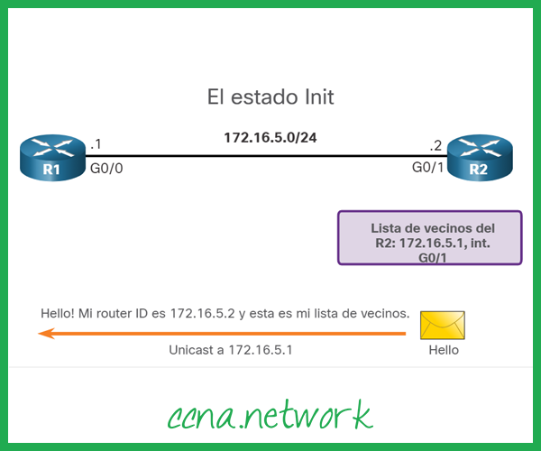 Quando um roteador habilitado para OSPF vizinho recebe um pacote Hello com uma ID de roteador que não está em sua lista de vizinhos, o roteador receptor tenta estabelecer uma adjacência com o roteador inicial.