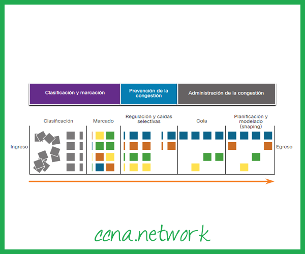 | Ferramentas de classificação e marcação | As sessões ou fluxos são analisados para determinar a que classe de tráfego pertencem. Quando a classe de tráfego é determinada, os pacotes são marcados. |